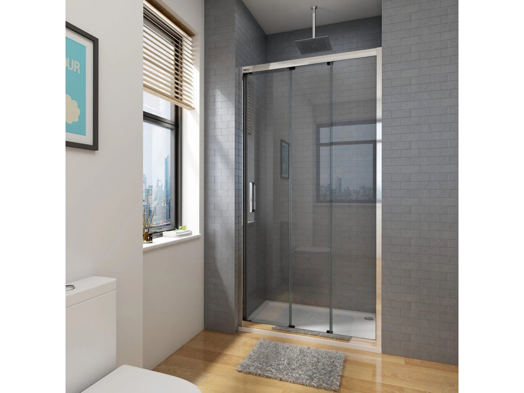 - 3- dílná zástěna (1x pevné sklo, 2x posuvné sklo)