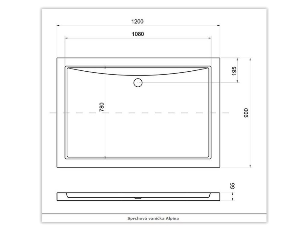 Rozměr vaničky:120×90×5,5 cm