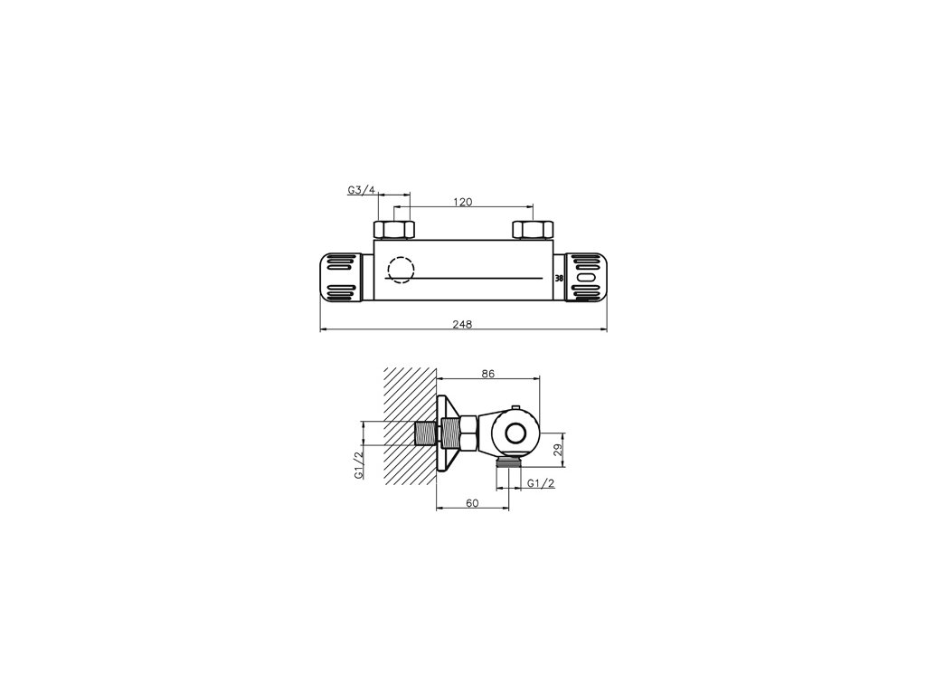 Aquamat Termostatická sprchová baterie, chrom, rozteč 120 mm, s bezpečnostní zarážkou