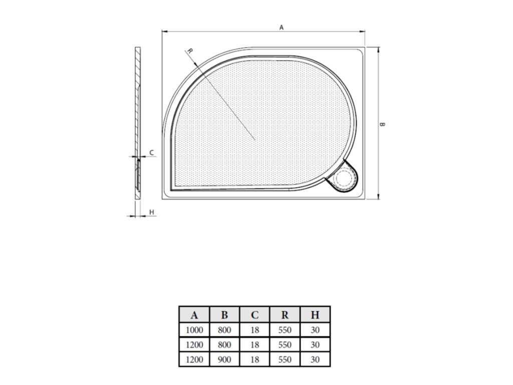 Asymetrická čtvrtkruhová sprchová vanička LAKA 120x80 cm levá
