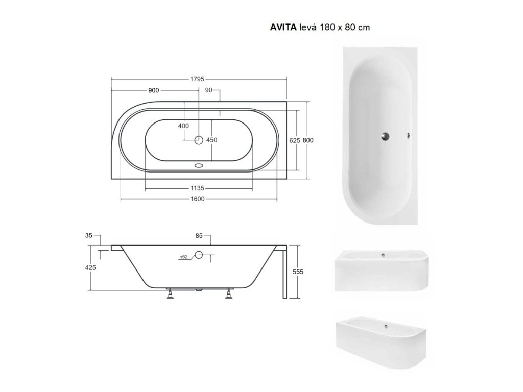 - 180 × 80 cm (215 l) (levá / pravá varianta)