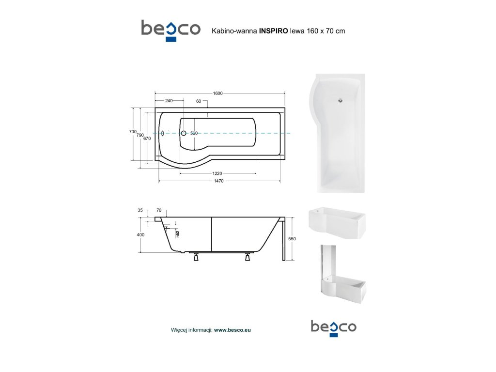 Asymetrická vana INSPIRO 160x70 cm levá včetně vanové zástěny