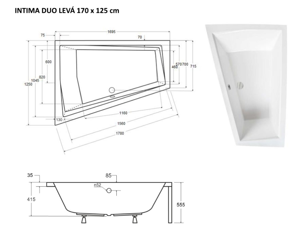 | Rozměr vany: | 170 × 125 cm |