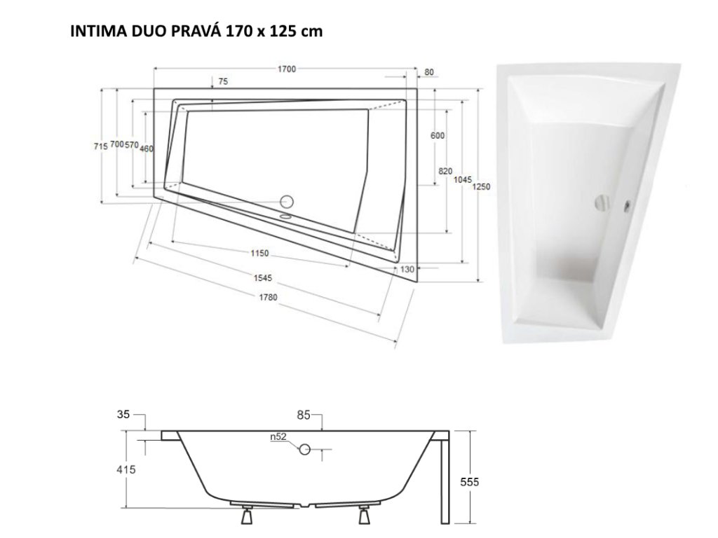 | Rozměr vany: | 170 × 125 cm |