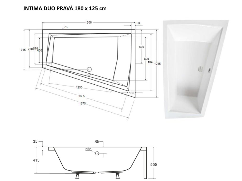 | Rozměr vany: | 180 × 125 cm |