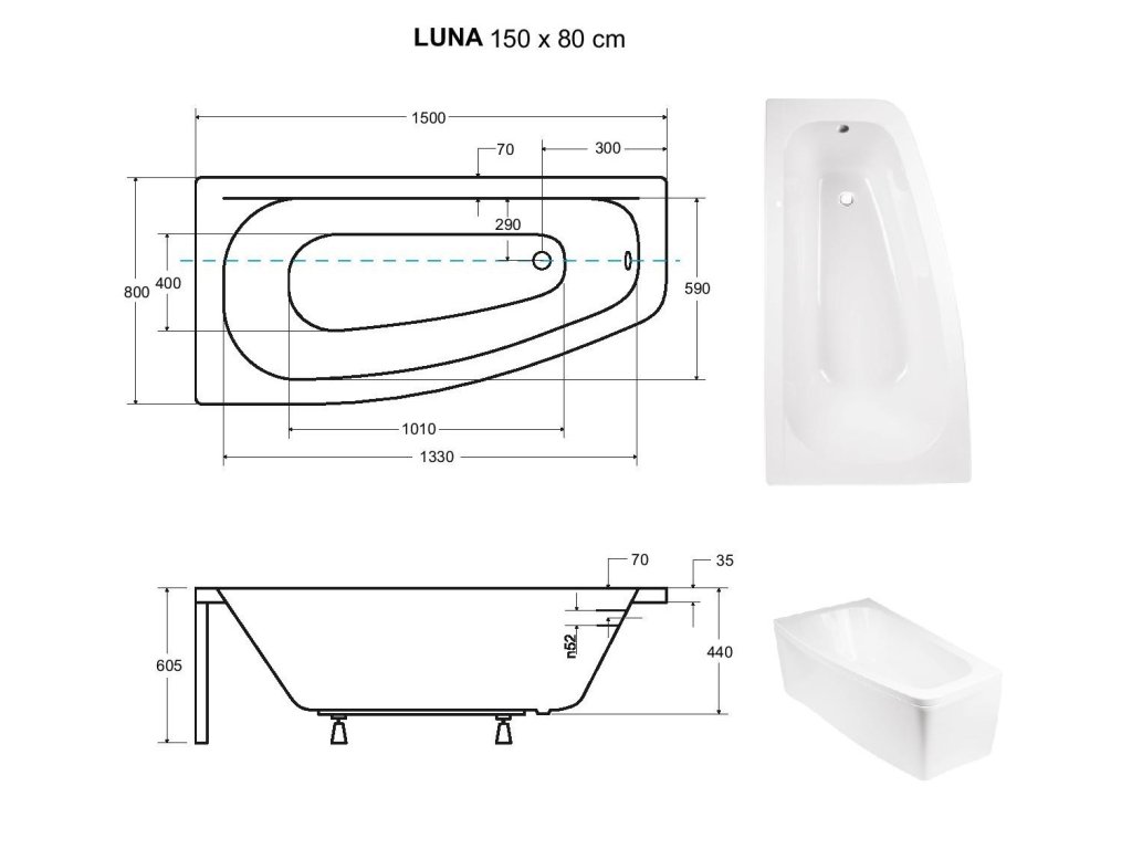 Asymetrická vana LUNA 150x80 cm levá