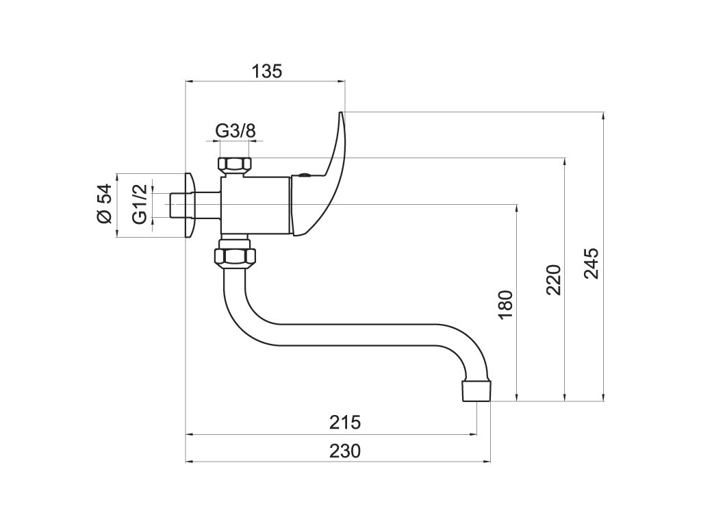 - Nástěnná baterie pro ohřívač vody s připojením 1/2" s trubkovým otočným ramenem s délkou 180 mm.