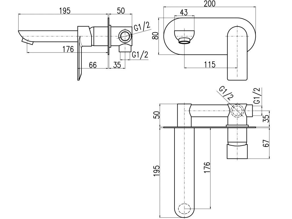 Besteco baterie podomítková umyvadlová Metal grey kartáčovaná