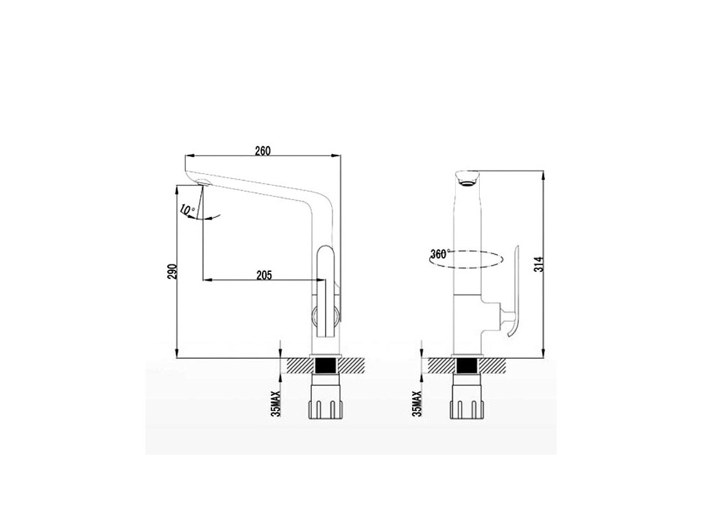 Ergonomie a Funkčnost: Jednopákové ovládání zajišťuje rychlou a intuitivní regulaci teploty. Otočné ramínko (ramínko: otočné) má plný rozsah otáčení 360 stupňů, což poskytuje maximální volnost pohybu a flexibilitu. Výška k ústí ramínka je velkorysých 26 cm, což usnadňuje mytí. Srdcem baterie je keramická kartuše o průměru 35 mm (průměr kartuše: 3,5 cm), která garantuje přesnou a plynulou regulaci.