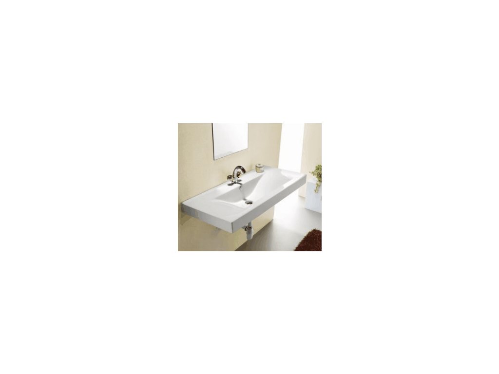 BESTECO Keramické Umyvadlo Kube 100 (Bílá Lesklá), Závěsné / Na Desku, 100x48 cm, S Otvorem a Přepadem