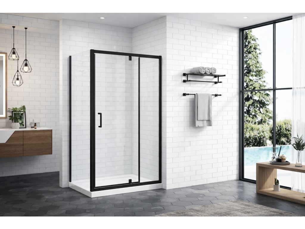 BESTECO Hammer Obdélníkový Sprchový Kout Černá Mat 120x90 cm