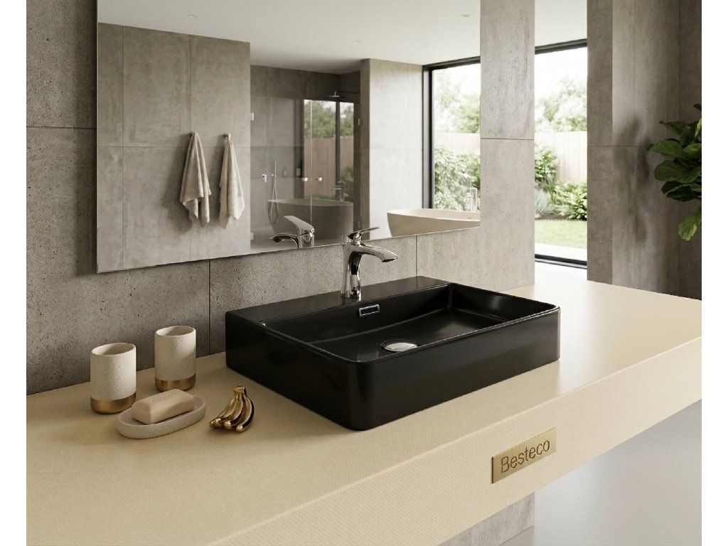 Besteco Orlo keramické umyvadlo na desku i na stěnu 50x42 cm, černá matná
