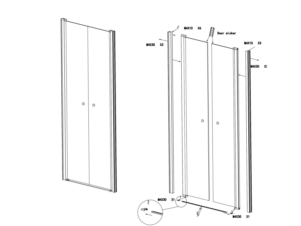 - Výbava/Balení: 2x skleněné křídlo, hliníkové profily, těsnění, madla, montážní sada