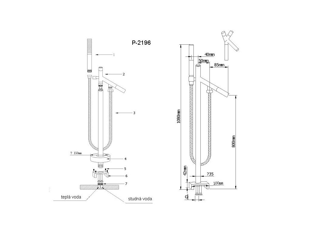 Výhodou podlahového řešení je to, že baterii si můžete umístit kamkoliv v okolí Vaší vany, baterie disponuje přepínačem na ruční sprchu a také zabudovaným držákem sprchy.