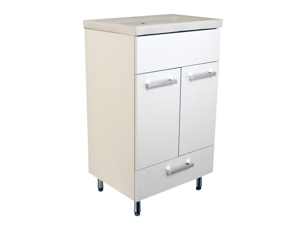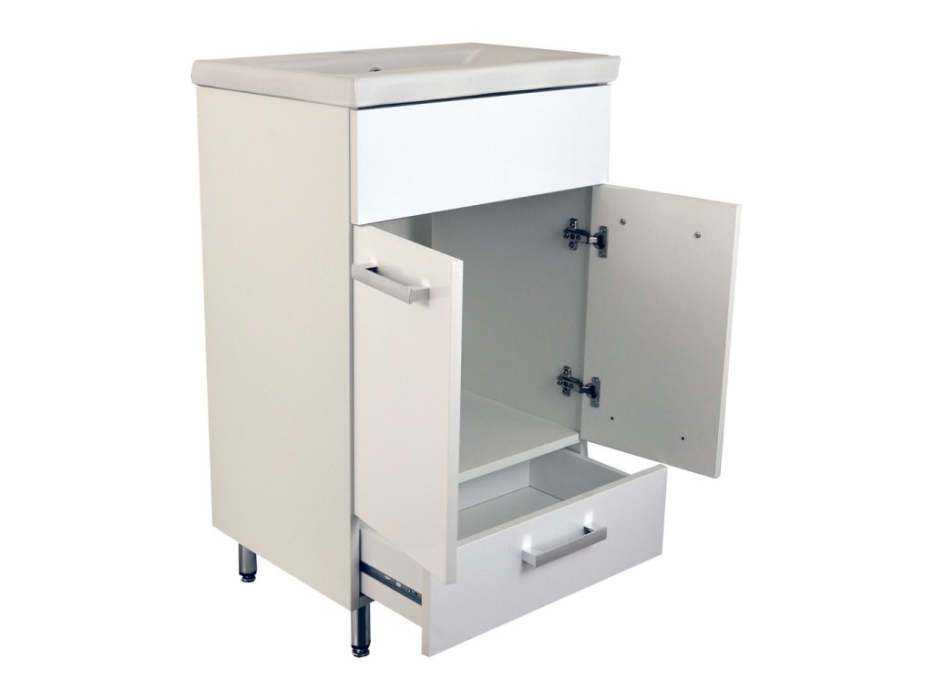Bílá skříňka s hranatým umyvadlem a spodní zásuvkou Leo S50 51x40 cm