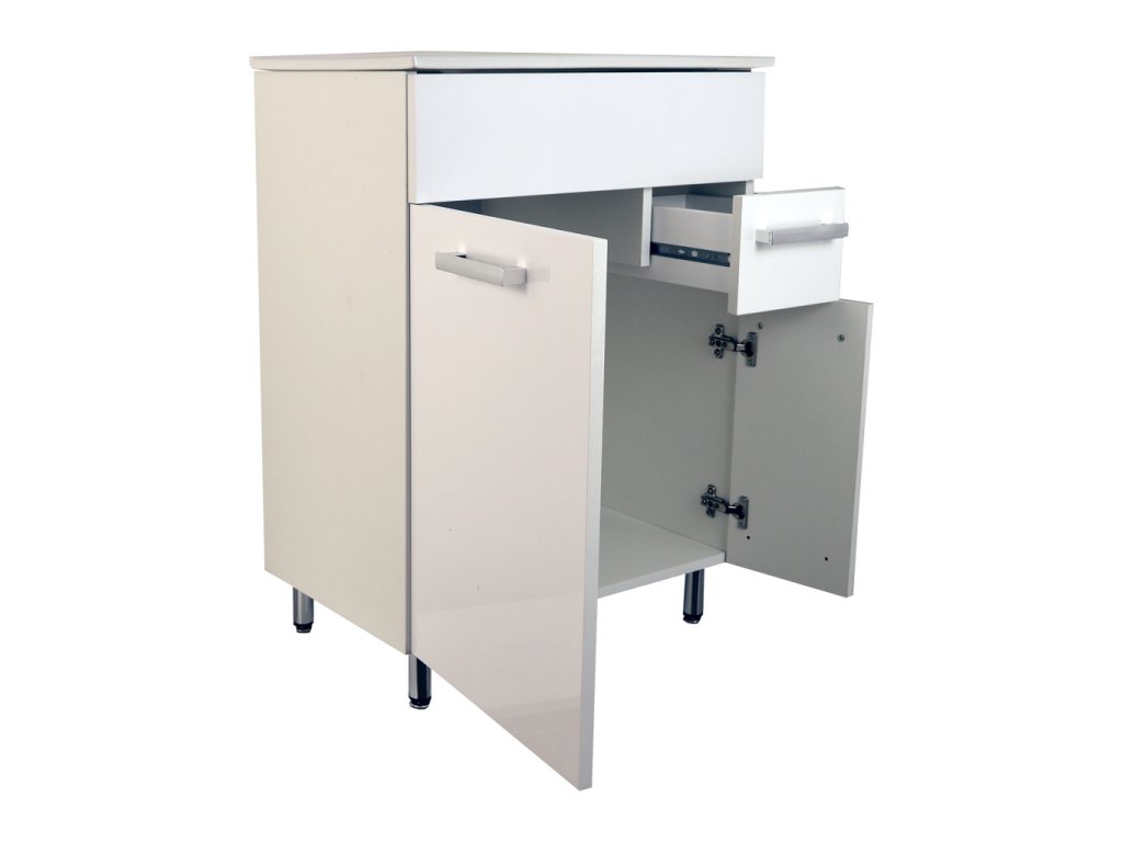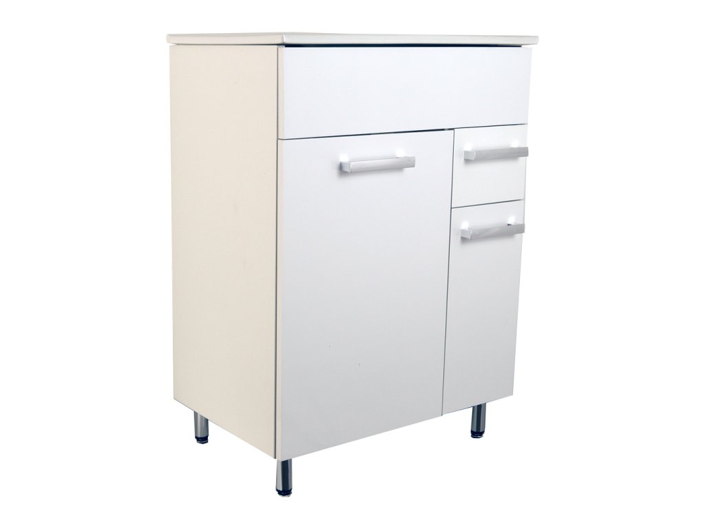 Bílá skříňka s hranatým umyvadlem a zásuvkou Leo S60