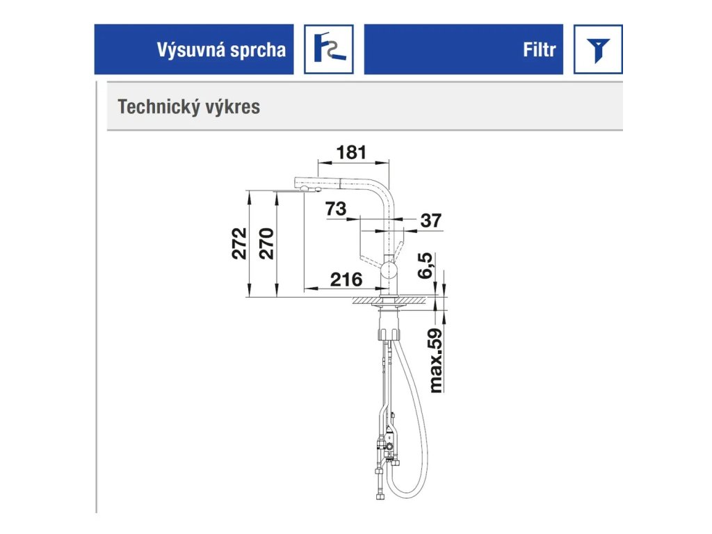 Výška k ústí výtoku (komfortní zóna): 270 mm, nebo 27 cm (270 mm).