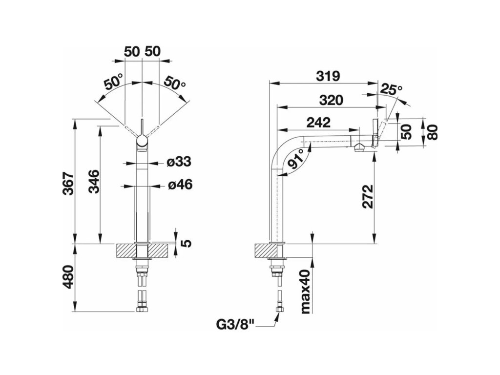 Výška k ústí výtoku (komfortní zóna): 272 mm (27,2 cm).