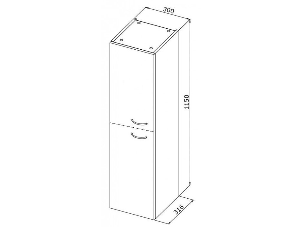 - Vysoká boční skříňka B (30 × 31,6 × 115 cm), 2 dvířka, pravé provedení
