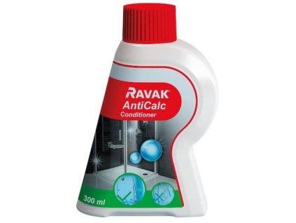 RAVAK AntiCalc Conditioner je speciální ochranný prostředek určený k obnově a udržení funkčnosti hydrofobní vrstvy RAVAK AntiCalc na skleněných výplních sprchových koutů, vanových zástěn a skleněných dveří. Přípravek obnovuje vodoodpudivé vlastnosti skla, chrání ho před usazováním vodního kamene a prodlužuje životnost ochranné vrstvy. Doporučuje se aplikovat každé 3 měsíce, podle tvrdosti vody a četnosti používání.