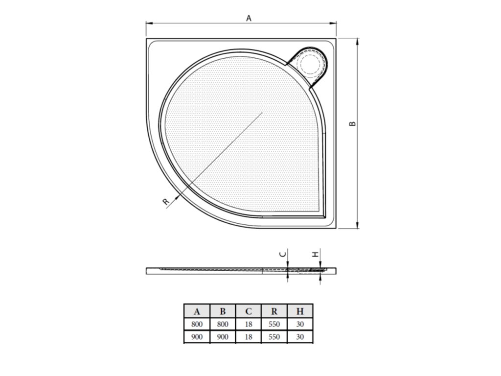 Čtvrtkruhová mramorová sprchová vanička 90x90x3cm LAKA R550