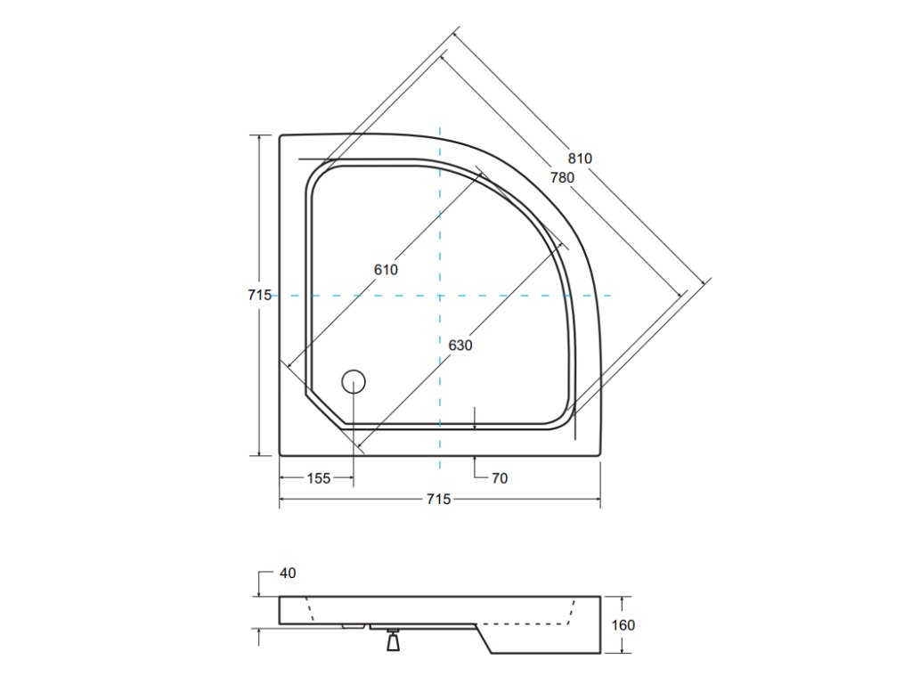 | Tvar: | Čtvrtkruhová vanička |