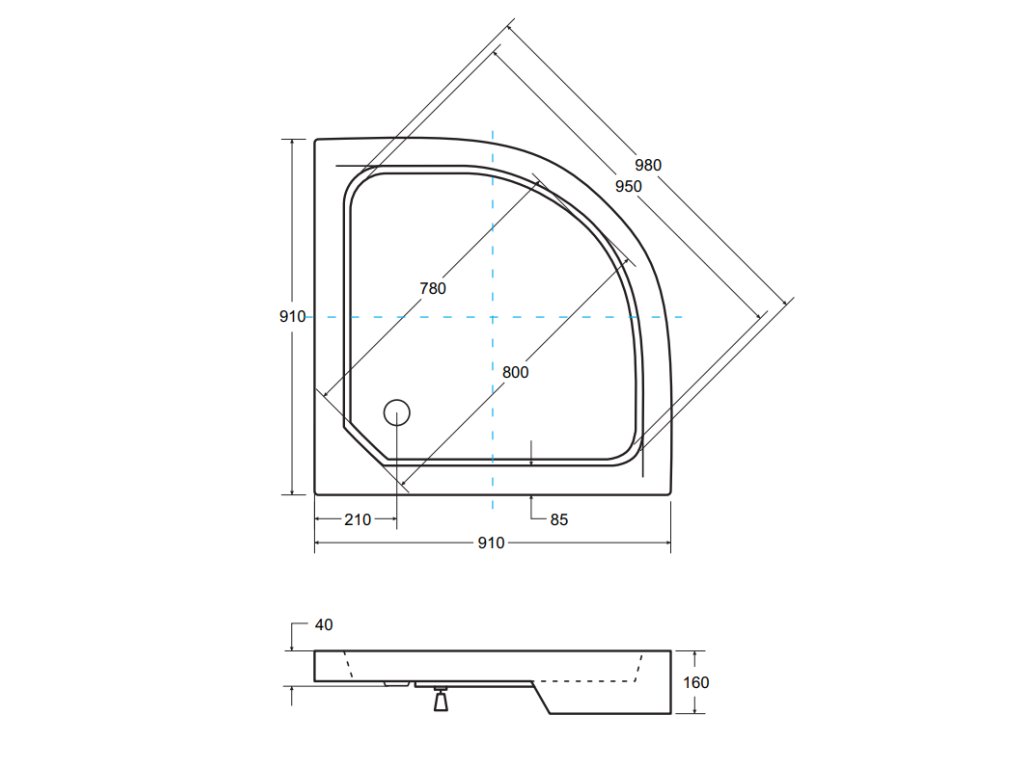- Rozměr: čtvrtkruh 91 × 91 × 16 cm