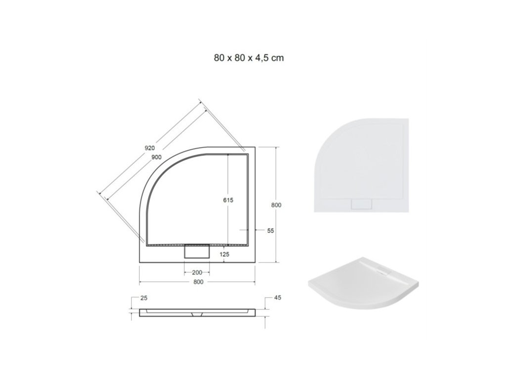 Čtvrtkruhová sprchová vanička AXIM 80x80x4,5 cm