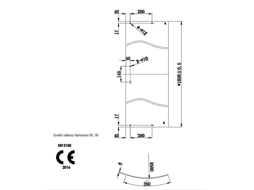- Sklo: bezpečnostní 6 mm čiré