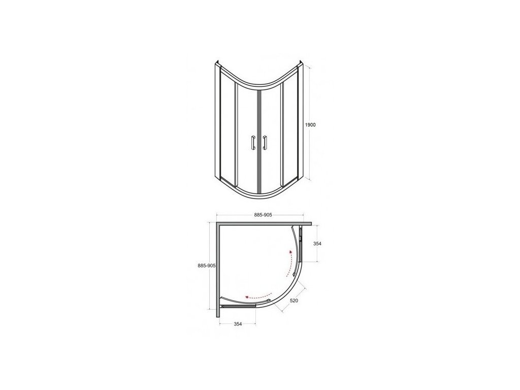 - Čtvrtkruhový sprchový kout