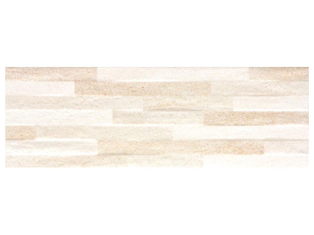 Tento obklad není jen o barvě, ale především o struktuře. Povrch má jemný reliéf připomínající vrstvený kámen. Odstín je teplá béžová, která prostor zútulní a opticky zahřeje. Na rozdíl od hladkých obkladů tento dekorativní prvek rozbíjí fádnost velkých ploch a dodává interiéru dynamiku. Matný povrch působí přirozeně a elegantně.
