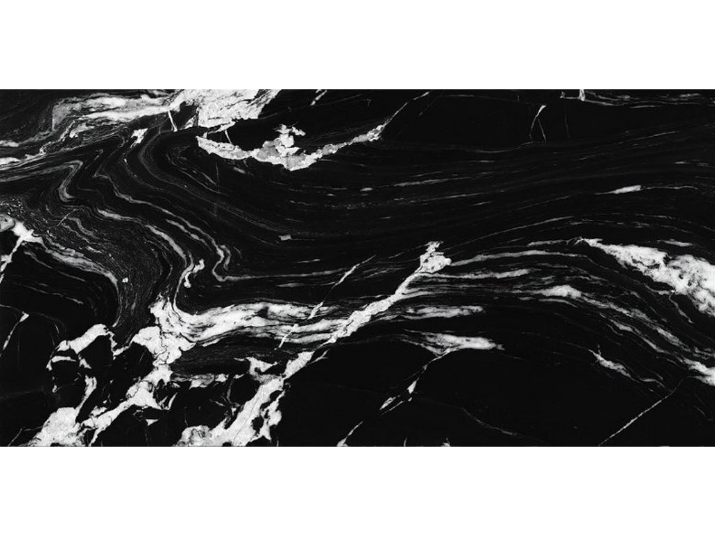 EBS LUX Iliria Nero dlažba 60x120x1,05 cm lesklá rektifikovaná mrazuvzdorná design černý mramor BESTECO