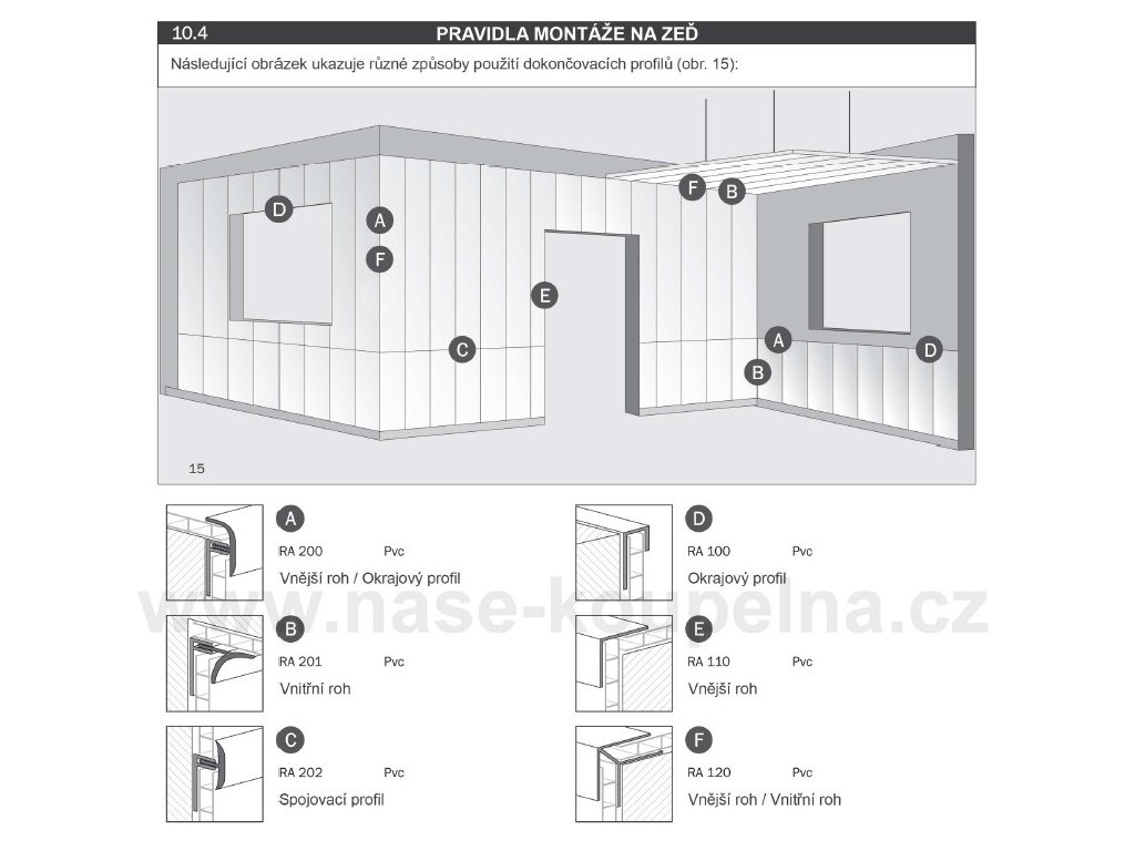 Okrajový obklad A100 se používá k zakončení obkládané plochy, zabraňuje usazování nečistot a průnikům vlhkosti do profilů.