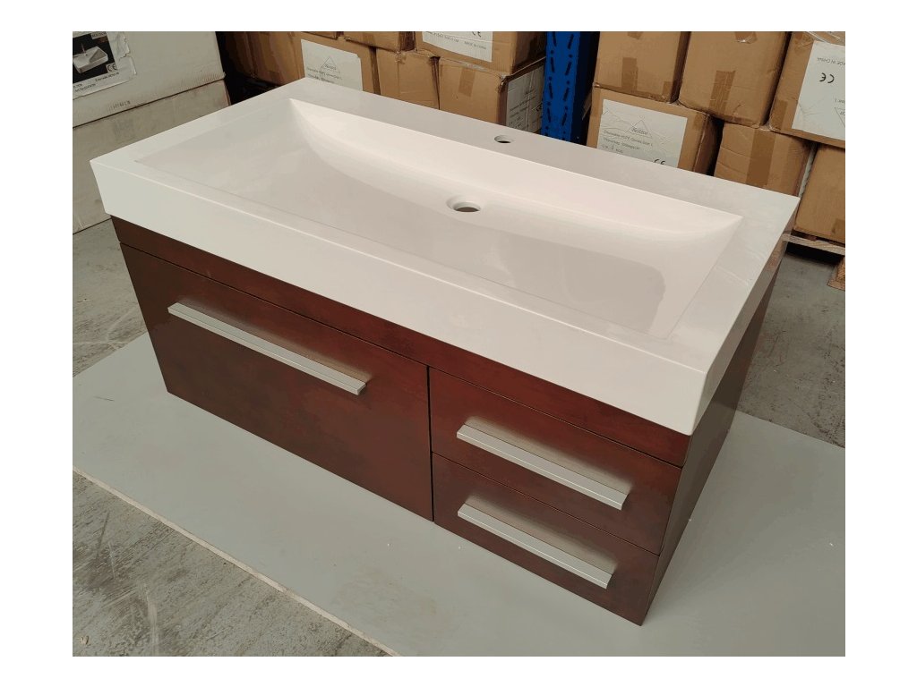 Masivní dřevěná skříňka hnědá s umyvadlem 100x50 cm z litého mramoru