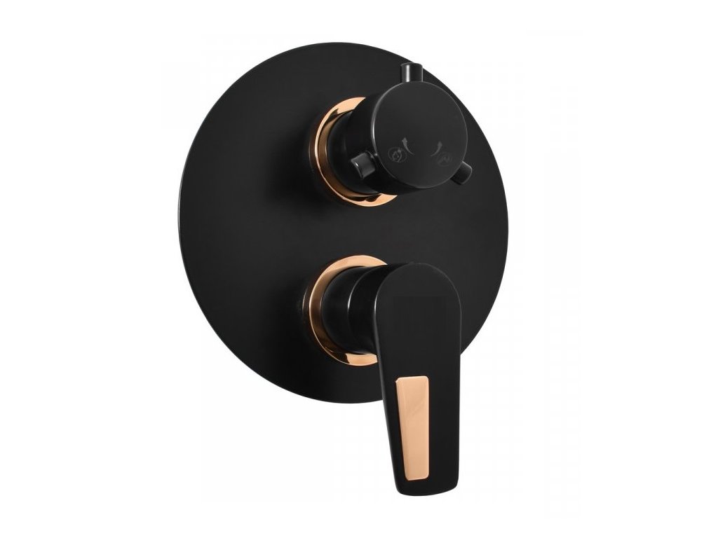 Podomítková sprchová baterie s integrovaným přepínačem pro 2 výstupy, možnost napojení např. ruční a hlavové sprchy.