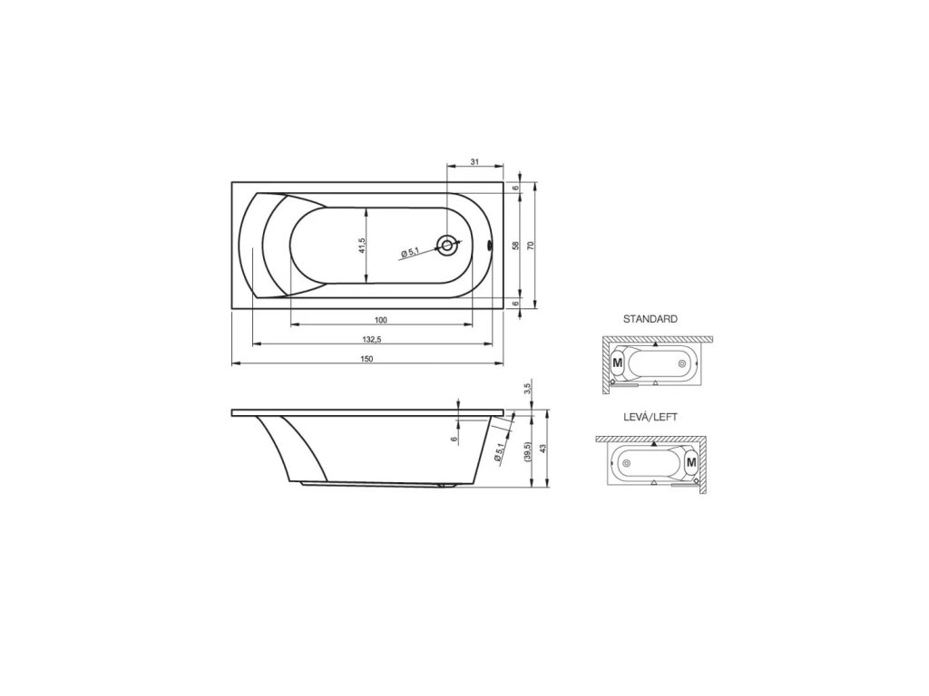 Ideální rozměr pro panelové domy: Rozměr 150x70 cm je standardem pro rekonstrukce koupelen s omezenými možnostmi.