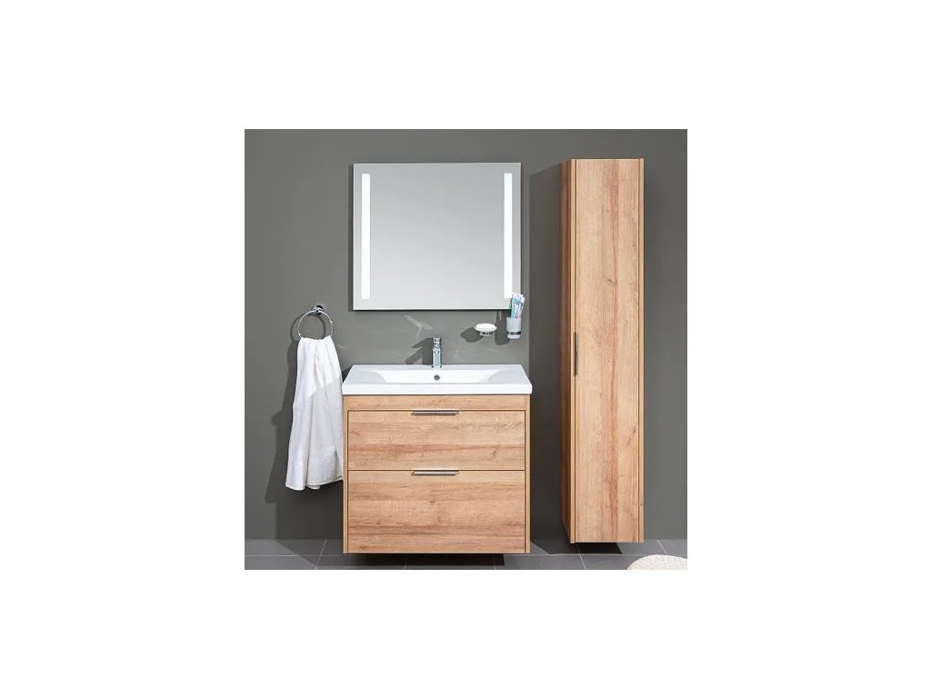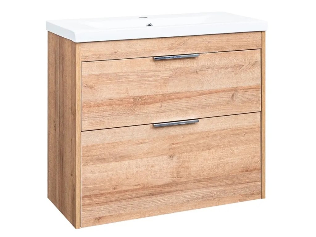 EBS Koupelnový Set City 81x72x40 cm Závěsná Skříňka s Umyvadlem, Dub Riviera, Dvě Zásuvky Soft-Close, Kód CITY81D