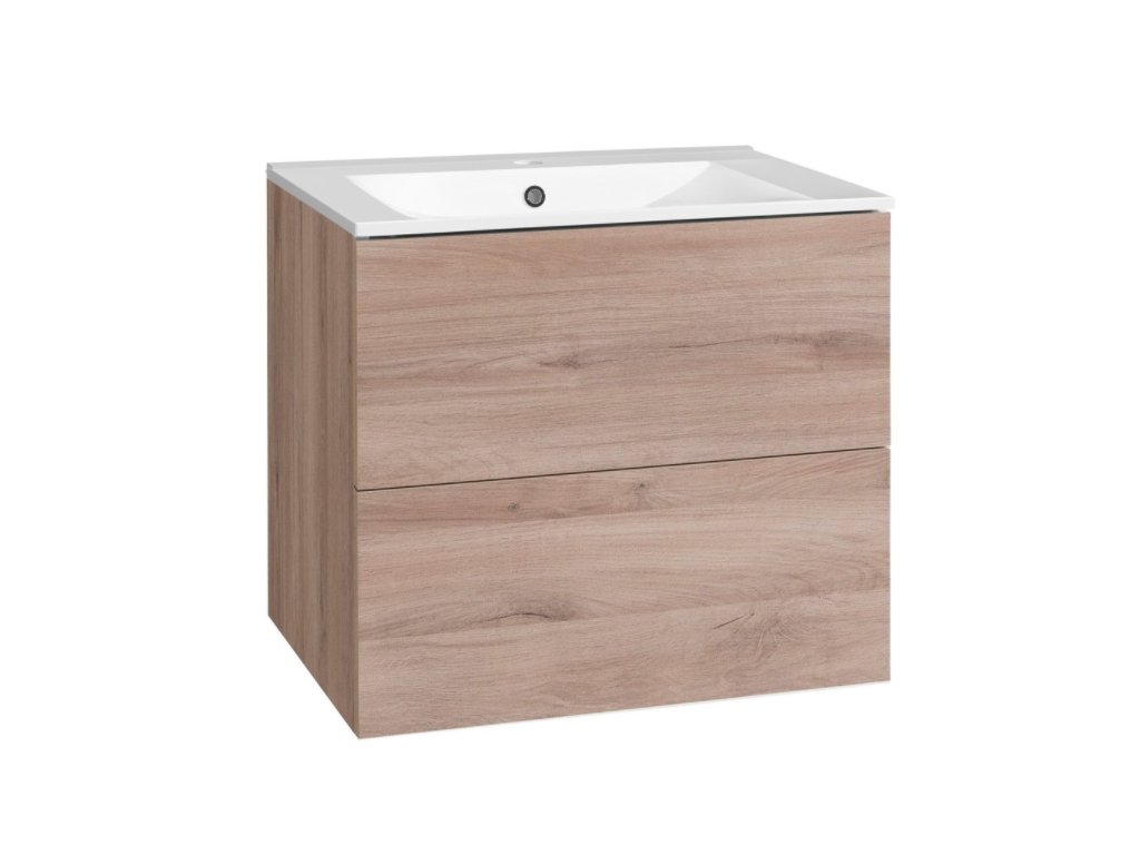 EBS Koupelnová Skříňka KUBA Závěsná s Keramickým Umyvadlem SLIM 61x46 cm, Provedení Bílá Lesklá, 2x Zásuvka BLUM Soft-Close/Push-Open, Kód KUBASL61B