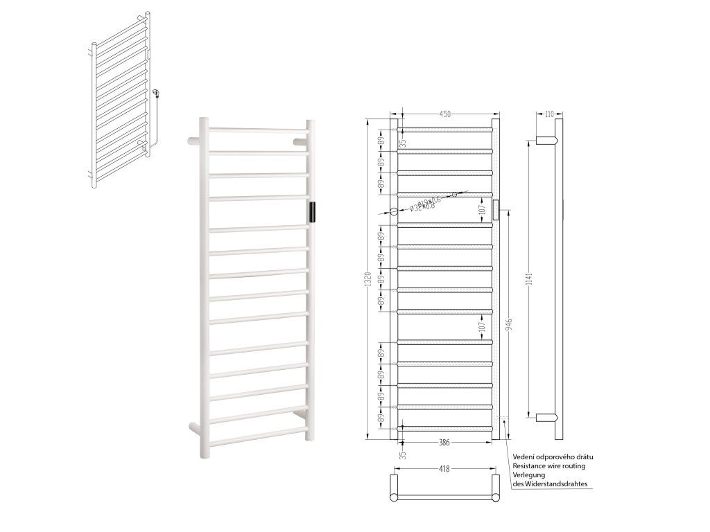 Elektrický sušák ručníků 450x1320mm, 180W, nerez, černá