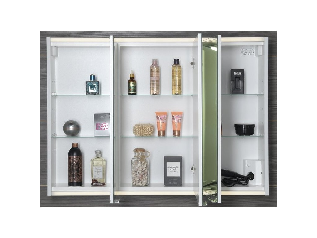 Sapho Koupelnová Galerka 100x71x16 cm | Třídveřová Bílá Matná s Integrovaným LED Osvětlením Denní Bílá 4000-5000 K | Úložný Prostor MDF/Lamino