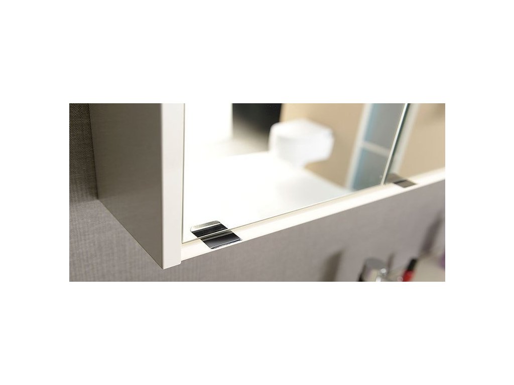 Integrované LED Osvětlení: Klíčovou technickou výhodou je tenké LED osvětlení integrované jak v horní, tak ve spodní části skříňky. Toto osvětlení využívá mléčné stínidlo, které garantuje perfektní a rovnoměrný rozptyl světla, přičemž maskuje jednotlivé LED body a eliminuje nepříjemné oslnění. Světlo je v barevné teplotě denní bílé (4 000 – 5 000 K), což je ideální pro líčení a každodenní hygienu.