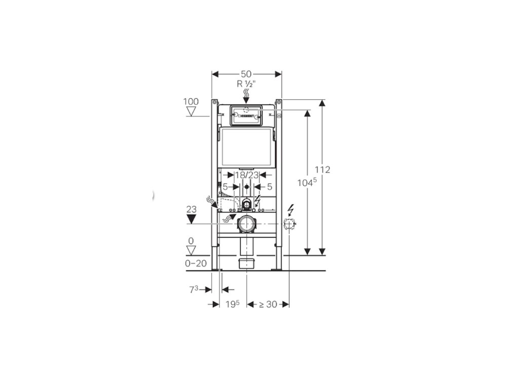 Robustní ocelový rám má nosnost až 400 kg. Modul je vybaven trubkovou chráničkou pro přívod vody, což usnadňuje pozdější připojení sprchovacího WC Geberit AquaClean. Tovární nastavení splachování je 6 a 3 litry (lze nastavit i na 4,5/3 litry). Oproti řadě Sigma má tento modul zjednodušenou konstrukci a je vhodný tam, kde je prioritou spolehlivost a cena, při zachování kvality Geberit. Důležité: Pro kompletní instalaci je nutné samostatně dokoupit kotvící sadu a ovládací tlačítko řady Delta.
