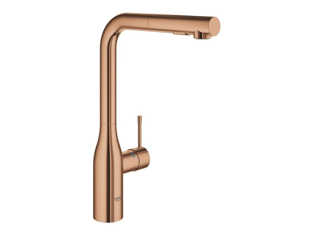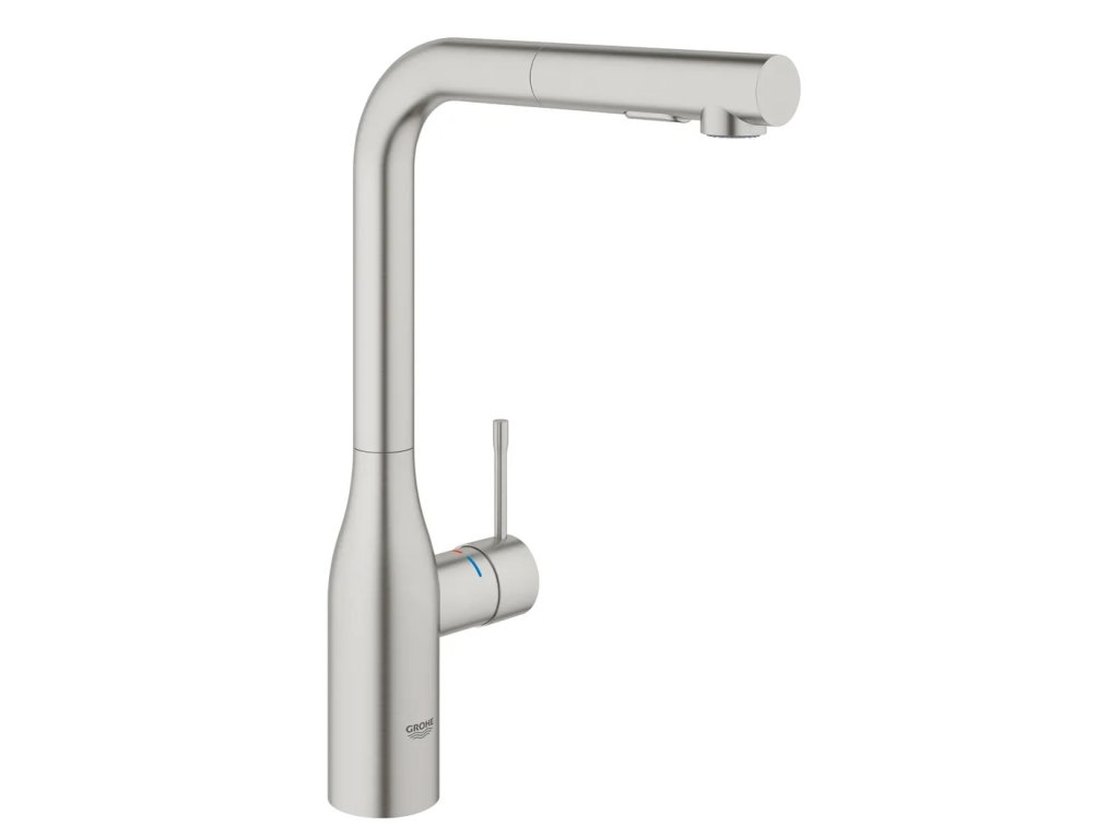 Kuchyňská baterie GROHE Essence je ideálním řešením do kuchyní, ve kterých záleží na výkonu a funkcích. Byla navržena tak, aby každé moderní kuchyni dodala elegantní, avšak minimalistický prvek. Baterie nabízí výpusť, kterou lze otáčet v rozsahu plných 360°, a kovovou vytahovací sprchovou hlavici se dvěma režimy proudu – jemným a intenzivním, mezi kterými je možné snadno přepínat pomocí jediného tlačítka.