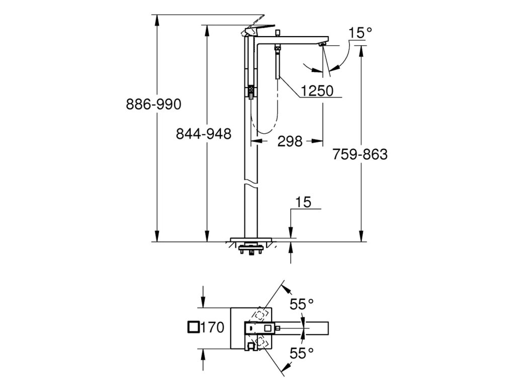 Grohe Eurocube vanová baterie, vysoká, volně stojící