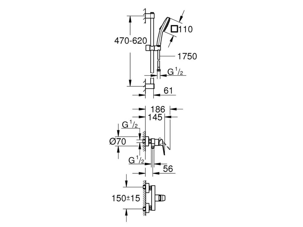 Grohe Professional Cubeo Sprchová nástěnná baterie se sprchovým setem, matná černá 1018252430