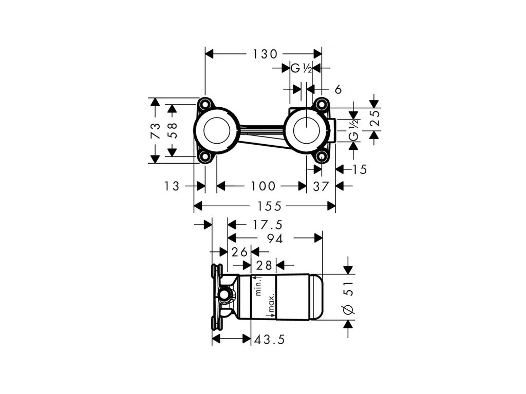 Hansgrohe Podomítkový prvek pro umyvadlovou nástěnnou baterii 13622180
