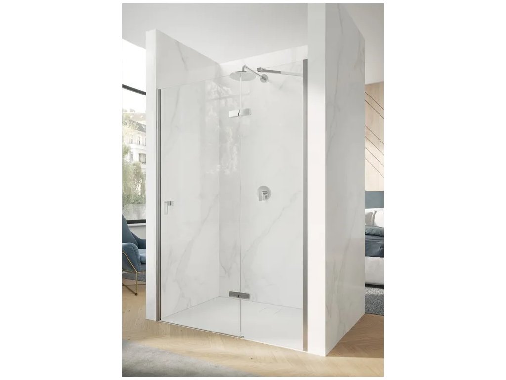 Modelová řada HÜPPE Time je ideální volbou pro ty, kteří hledají funkční a zároveň esteticky čisté řešení koupelny. Konstrukce se skládá z jednoho pohyblivého křídla a pevného skleněného segmentu, což umožňuje pohodlný vstup i ve velkorysých šířkách sprchového koutu. Tento konkrétní model má orientaci PRAVOU (panty jsou umístěny vpravo, pohled zvenčí) a dveře se otevírají směrem VEN do prostoru koupelny, což zajišťuje bezpečný a snadný přístup.