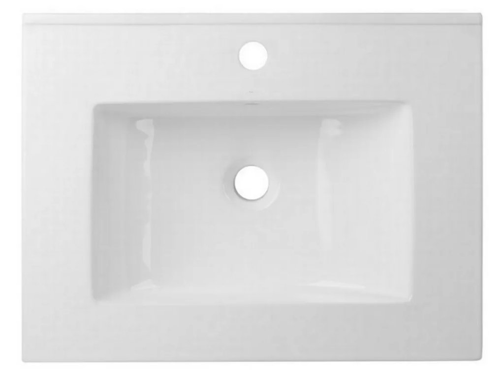 Součástí dodávky je integrované keramické umyvadlo o rozměru 61x48 cm, které vyniká vysokou tvrdostí, hygieničností a snadnou údržbou, a zároveň minimalizuje vystoupení do prostoru. Úložný prostor je organizován ve dvou prostorných zásuvkách (šuplících). Ty jsou osazeny pojezdy Strong s funkcí zpomaleného dovírání (Soft-Close), což zajišťuje tichý a šetrný provoz. Design podtrhují elegantní černé designové úchytky. V horní zásuvce je připraveno vykrojení pro umyvadlový sifon, optimalizující využití celého objemu. Celý set je dodáván již kompletně smontovaný, což výrazně usnadňuje a urychluje jeho instalaci.