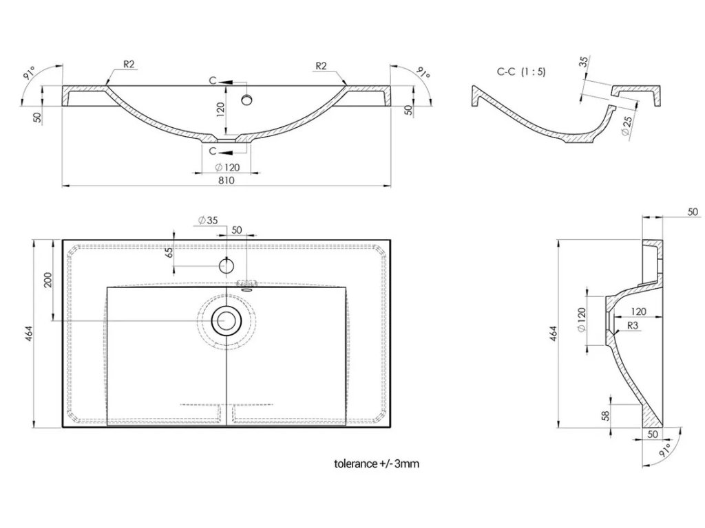 - Šířka: 81 cm (včetně umyvadla)