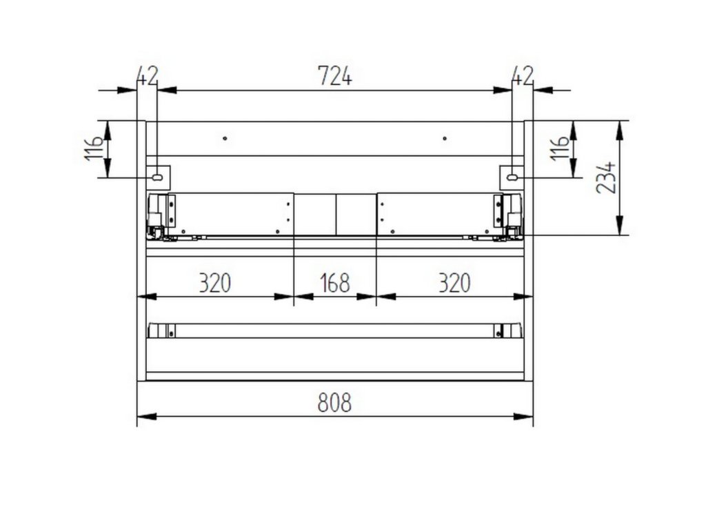 - Počet zásuvek: 2 plnovýsuvné zásuvky (horní zásuvka má vnitřní výřez pro sifon)